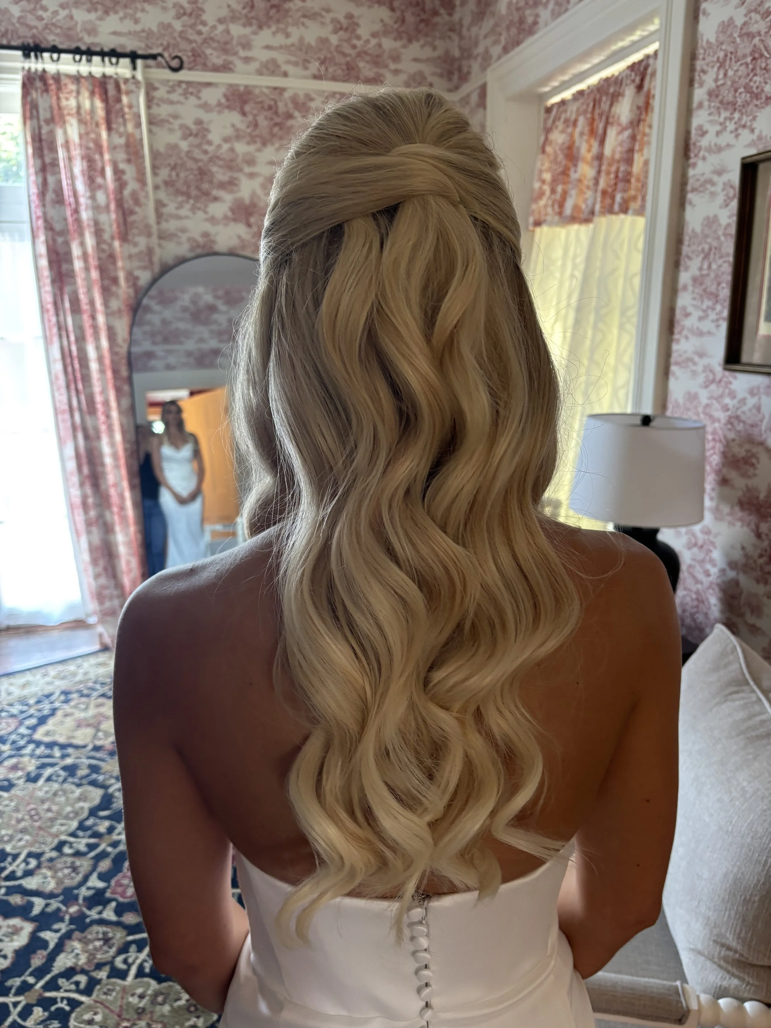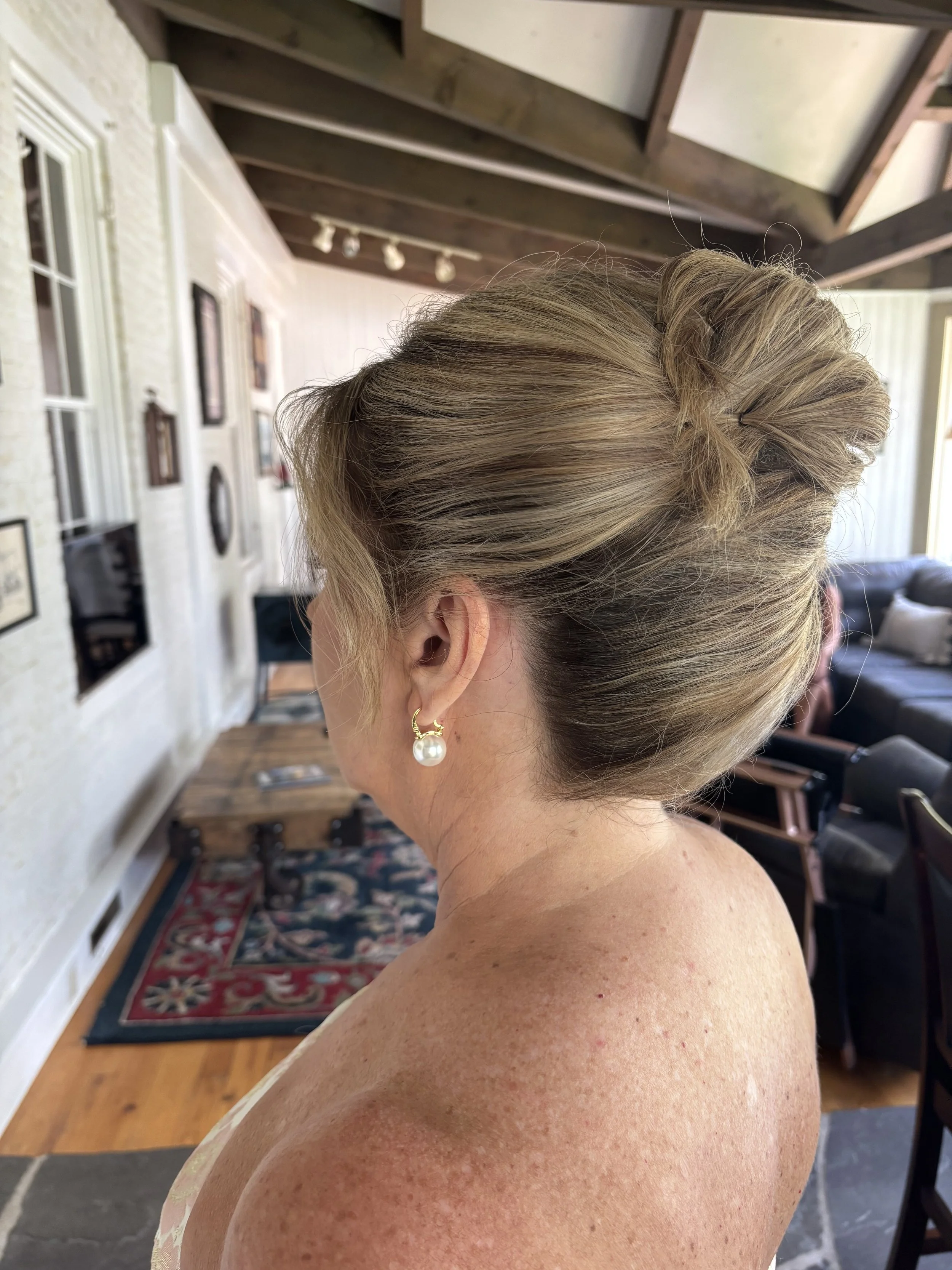 Luxury on-site wedding hairstyling for brides and bridal parties.